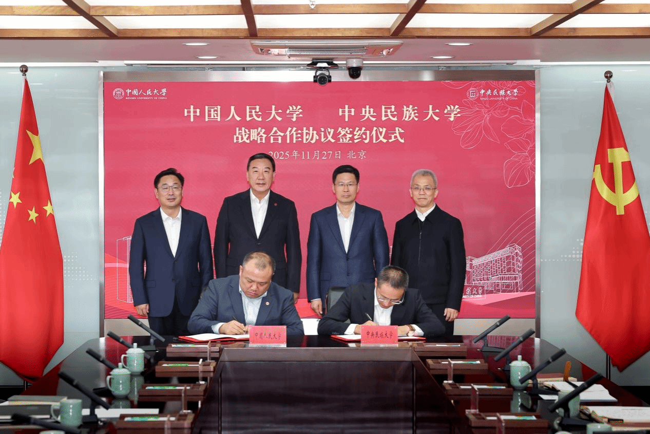 11月27日,中央民族大学与中国人民大学签署战略合作协议,加快建构中国自主的知识体系,共同服务推进中华民族共同体建设,开启双方事业...